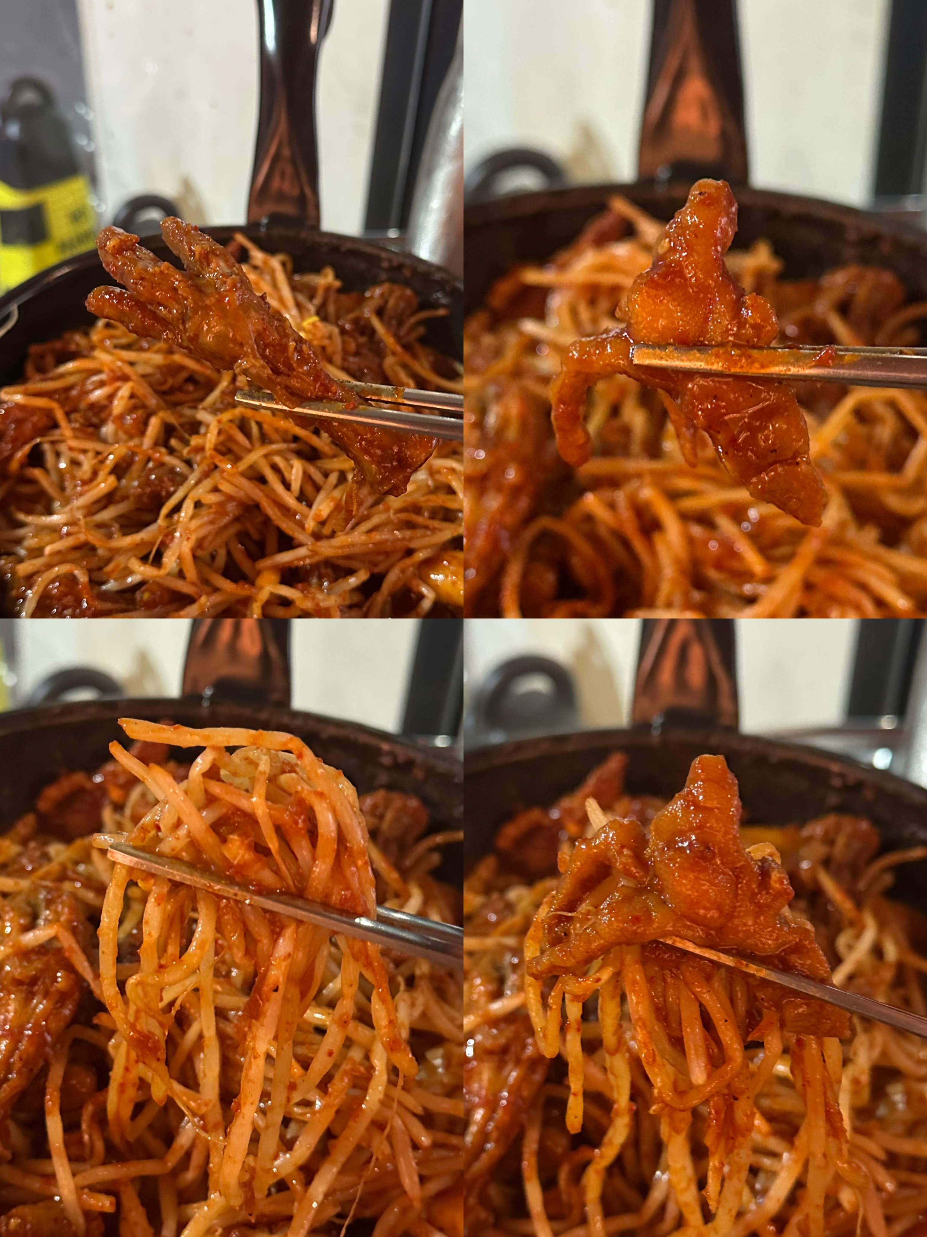 닭발 국물에도 찍어먹고 무뼈닭발도 올려먹고